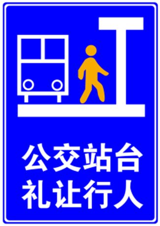 為加強提醒非機動車注意前方公交車輛下客情況,提前做好減速慢行準備,可酌情設(shè)置指示標志,版面可參考下圖所示,若夜晚,周圍光照環(huán)境不佳,建議采用主動發(fā)光標志,不僅加強指示的醒目性,同時也照顧自身無光照條件的非機動車騎乘人。