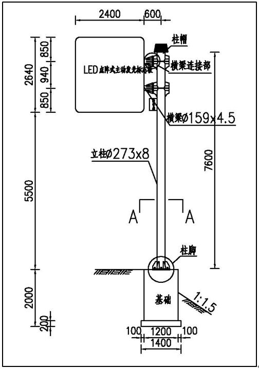 在交通標志升級改造工程中,有時候,需要對現(xiàn)有標志桿件進行結(jié)構(gòu)驗證,計算將普通標志更換為主動發(fā)光標志后,現(xiàn)有桿件是否還能適應(yīng)結(jié)構(gòu)承重。本文例舉2400mm*2640mm的點陣發(fā)光標志的配套桿件(立柱:273mm*8mm*7600mm;懸臂:159mm*4.5mm*3180mm*2根),以供同行參考。