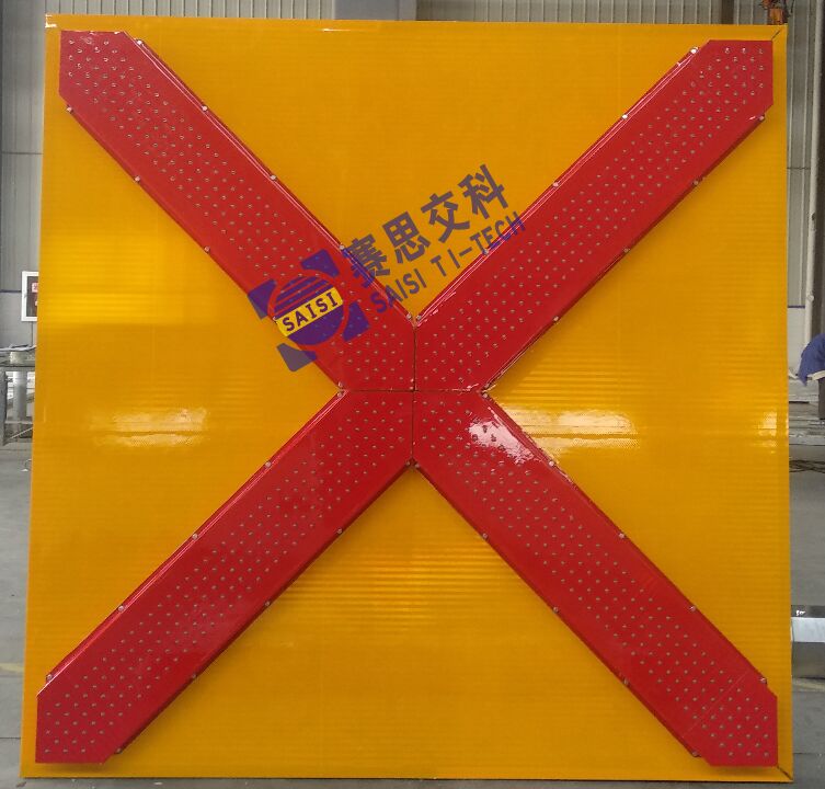技術(shù)參數(shù):尺寸2000mm*2000mm;黃底、紅圖案、紅色LED管;LED點陣式主動發(fā)光標(biāo)志;太陽能供電或外接市電。