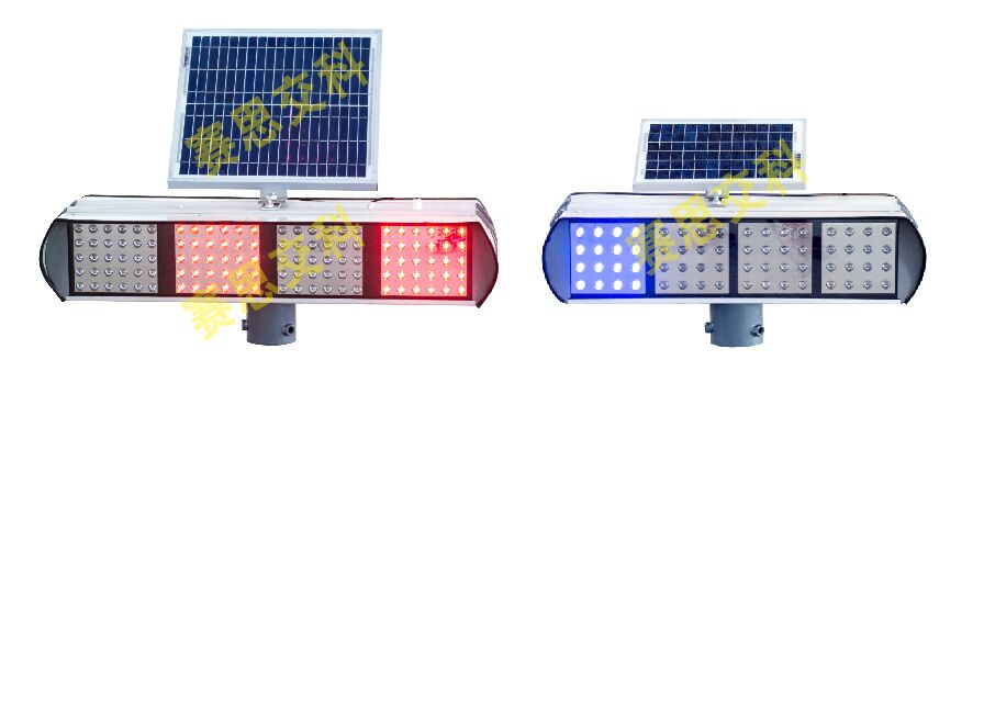 常規(guī)的主動發(fā)光警告標(biāo)志、交通信號燈,也是一種采用LED發(fā)光管實現(xiàn)發(fā)光警示的效果,但其向交通參與者所傳達的交通語言信息,是以圖案信息的形式,這就要求生產(chǎn)廠家在設(shè)置主動發(fā)光警告標(biāo)志、交通信號燈時,其LED發(fā)光管的亮度不能影響信息的視認(rèn)。如交通信號燈,在保證燈盤發(fā)光為前提時,又要求交通參與者能準(zhǔn)確看清箭頭方向;主動發(fā)光警告標(biāo)志,發(fā)光時不能形成光暈、光團,影響標(biāo)志圖案的視認(rèn);而太陽能爆閃燈所傳達的信息僅為光信息,即司機看到前方有紅、藍閃爍光,便明白前方為需謹(jǐn)慎駕駛的路段,并不需要看清太陽能爆閃燈的燈盤內(nèi)圖案是什么。兩者在信息表達上存在本質(zhì)區(qū)別。