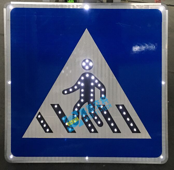 (3)注意行人發(fā)光警告標(biāo)志(輔標(biāo)"有人過街、注意禮讓")