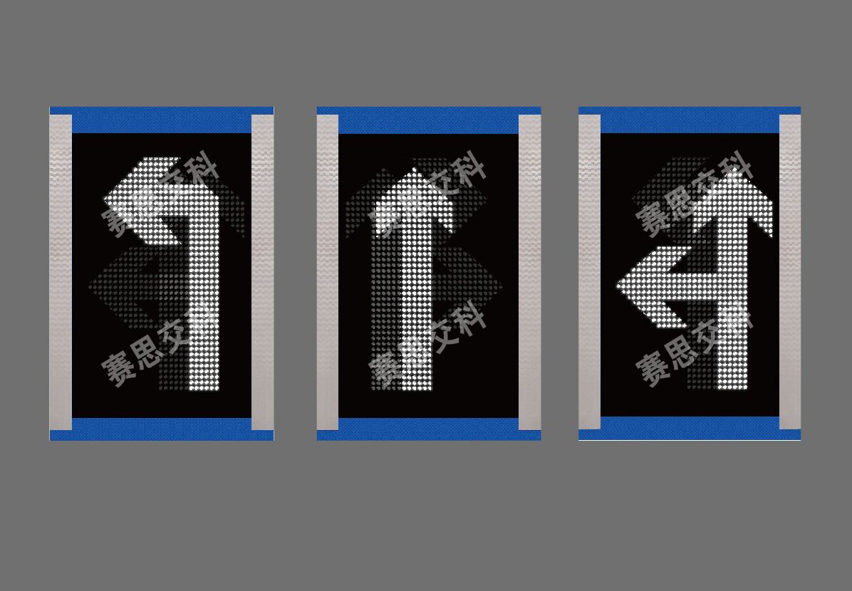 1、基本說明:標志框體內(nèi)采用數(shù)碼布點,嵌入密集LED發(fā)光點陣,采用固定電路開板,顯示獨立的箭頭、紅叉LED圖案,根據(jù)交通組織需要,分時段切換。