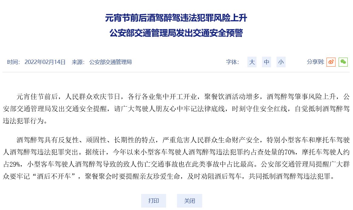 元宵節(jié)慶祝應(yīng)牢記酒后不開車,公安部交通管理局發(fā)出交通安全預(yù)警