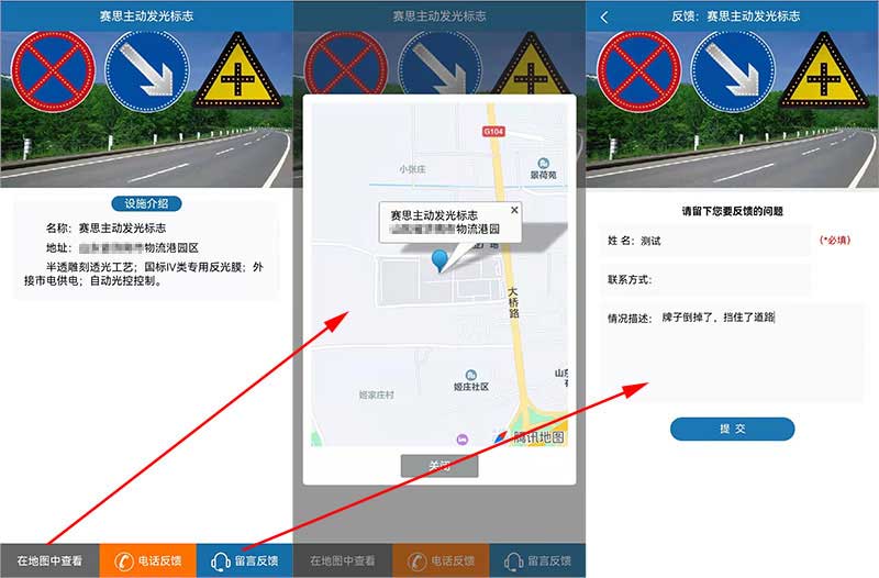 手機(jī)掃描二維碼后打開設(shè)施設(shè)備詳情頁面,可看到當(dāng)前設(shè)施設(shè)備的詳細(xì)資料,可通過地圖查看當(dāng)前位置,也可通過撥打電話、留言反饋等方式向后臺(tái)反映問題。不僅方便了公眾查詢自己當(dāng)前位置及相關(guān)情況,也方便設(shè)施設(shè)備維護(hù)機(jī)構(gòu)對(duì)出現(xiàn)問題的設(shè)施設(shè)備進(jìn)行及時(shí)維護(hù)。
