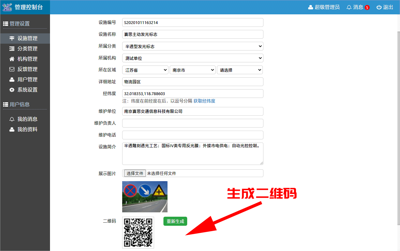 這款設(shè)施管理系統(tǒng),可通過后臺(tái)添加修改設(shè)施設(shè)備,并生成對(duì)應(yīng)的二維碼。可把二維碼印在分散各地的設(shè)施設(shè)備上,不僅能讓公眾查看設(shè)施設(shè)備的詳情,也能及時(shí)反饋故障。比如交通設(shè)施,出現(xiàn)倒塌等問題后,行人可通過掃描二維碼提交故障問題,后臺(tái)人員可及時(shí)看到實(shí)時(shí)反饋,安排人員進(jìn)行搶修。