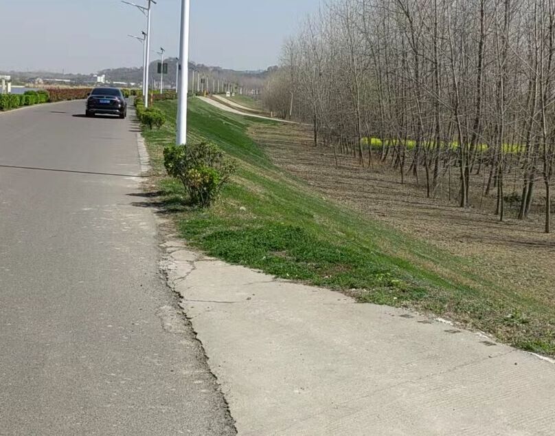 如下圖:前方有一段鄉(xiāng)村路交叉匯入主線,主線兩側(cè)卻沒有岔口警告標(biāo)志;小叉路路寬較窄,幾乎只能容下單車通行,傍晚時常有附近的居民從這條路上河堤散步,等散步完回家時,天色已黑,這條路照明條件不好,如果有車輛從河堤上俯沖下來,下面有人,就會非常危險;且陡坡下來不遠(yuǎn)就是池塘,沒有提示標(biāo)志、沒有防撞護(hù)欄。下圖左:右側(cè)叉口在主線上被苗圃遮擋,出口無法發(fā)現(xiàn):下圖右:叉口很窄,且向下不遠(yuǎn)就是池塘。