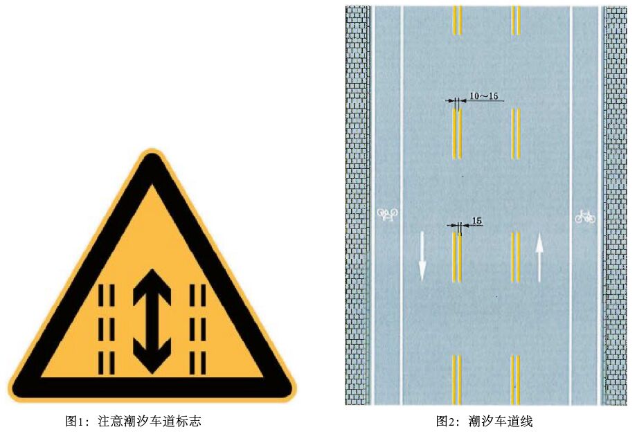 對于潮汐車道,應在臨近潮汐車道附近的主要交通節(jié)點及主干道路上,應設置必要的“潮汐車道指示標志”,提前向道路使用者預告潮汐車道信息,并配合對應的地面標識使用。