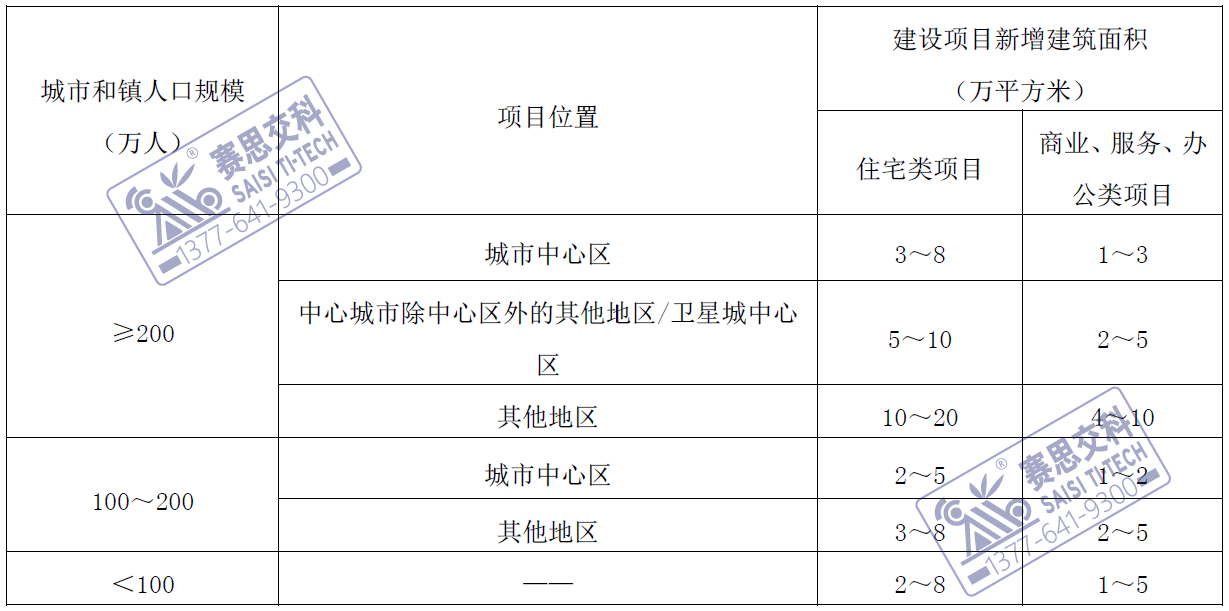 2、場館與園林和醫(yī)療類建設(shè)項(xiàng)目的啟動(dòng)閾值應(yīng)為:新增配建機(jī)動(dòng)車配建停車泊位大于100個(gè)。