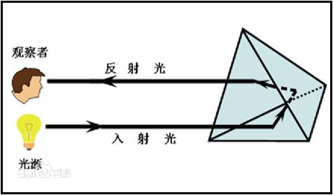 讓一束入射光線從正面照射在反光材料上,經(jīng)內(nèi)部折射,再反向穿透反光材料,沿入射光平行的方向反射回來,讓在一定觀察區(qū)域內(nèi)的觀察者捕捉到反射光,又稱“回歸反射”,屬于被動光源范疇。