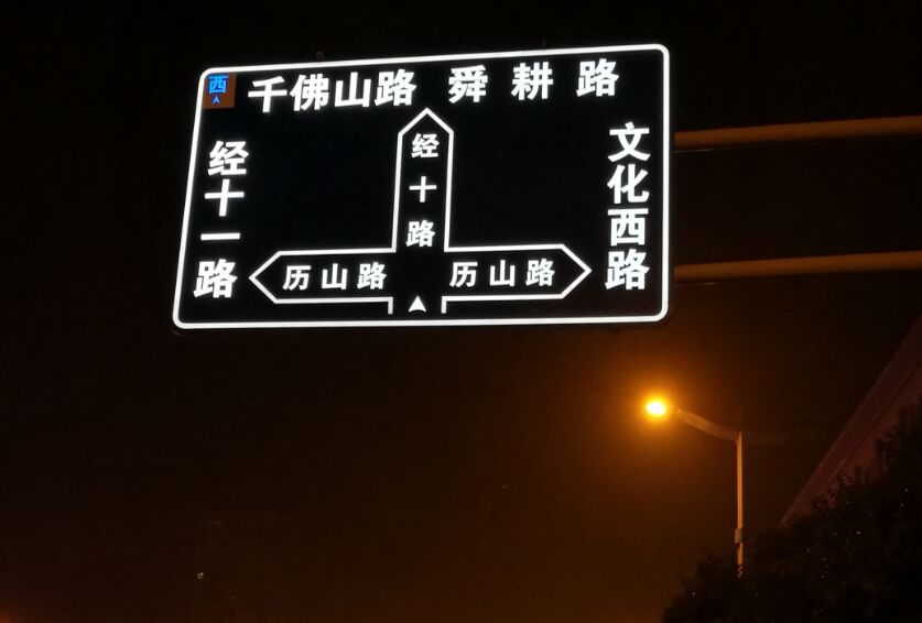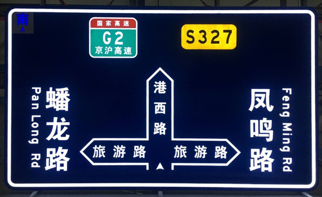 1、指示、指路類標(biāo)志(深色底膜,白色字符膜,因白色反光膜的透光率強,其它顏色透光率弱,不適合采用半透工藝,特別式黑色字膜不透光);