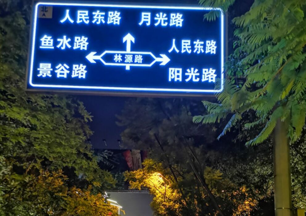 標(biāo)志底板不發(fā)光,文字、符號、邊框等發(fā)光,筆畫飽滿,視覺柔和,特別在周邊暗環(huán)境中,具備極強的視認(rèn)效果。